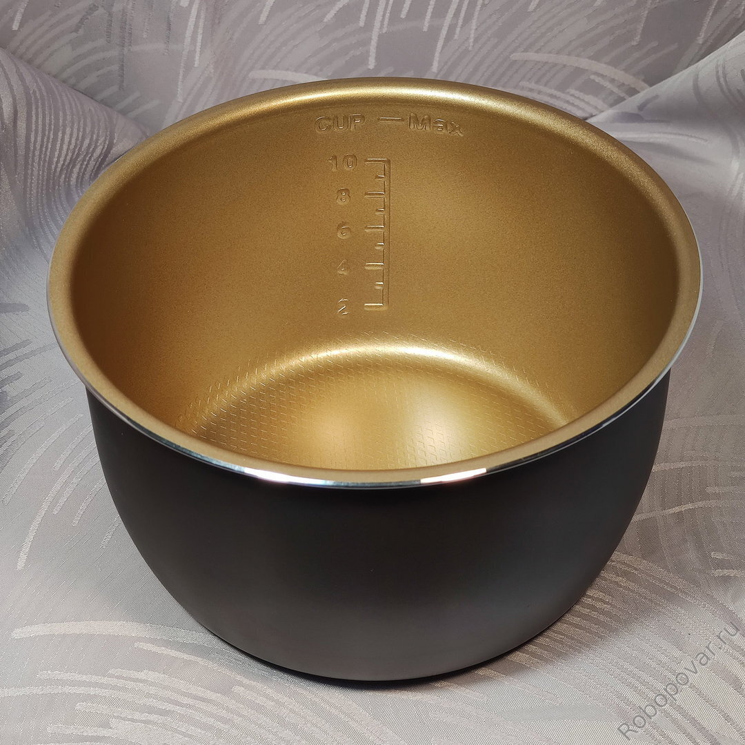 В этой чаше увеличенная толщина стенок и дна, что обеспечивает более равномерный нагрев продуктов и распределение тепла внутри мультиварки